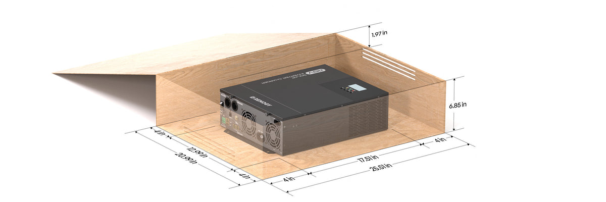Before installing the inverter, leave 1.97 inches of space for the top of the inverter and at least 4 inches on the side with busbars.