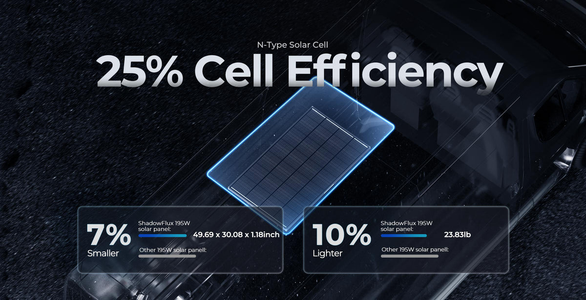 ShadowFlux features a high open-circuit voltage (36.5V). This panel is compatible with both 12V and 24V battery systems.