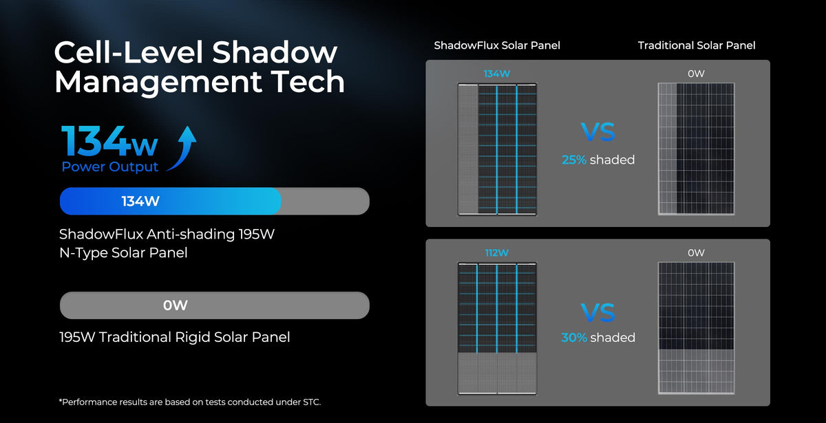 Drastically Reduced Power Loss: While all panels lose some power when shaded, ShadowFlux loses far less. You'll see significantly higher wattage output under the same shaded conditions compared to a conventional panel.