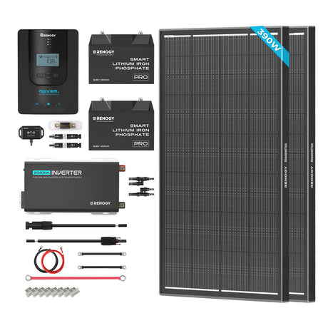 390W 12V Complete Solar Kit w/ Two 100Ah LiFePO4 Batteries