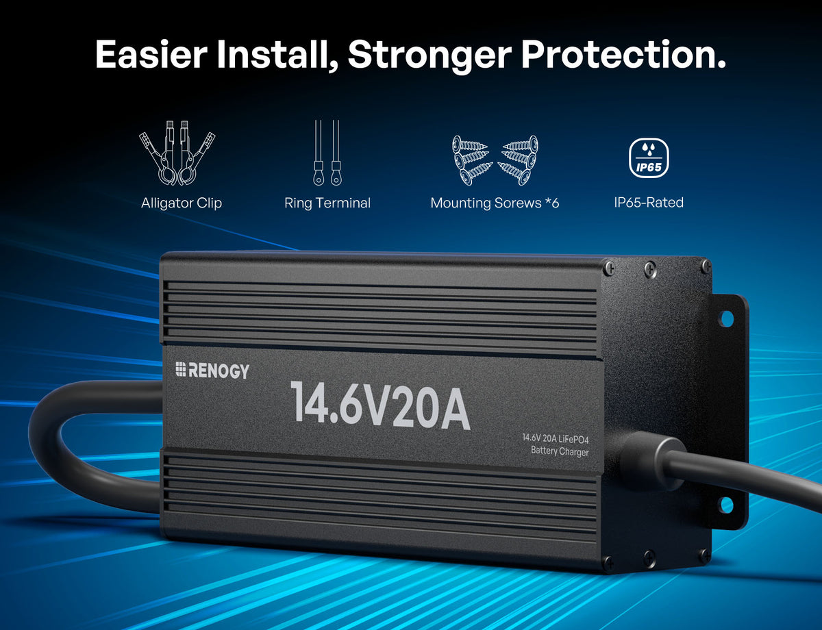 Renogy 12V 20A AC-DC LFP Portable Battery Charger