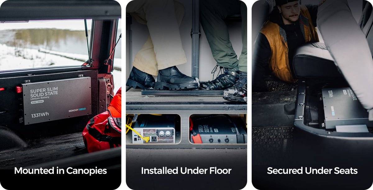 With sophisticated accessory kits, you can secure this slimline LFP battery on the side of canopies, under the floor, or under seats, no matter how beaten the path is.