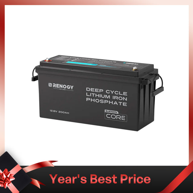 Providing reliable power almost 10 times longer than standard lead-acid batteries, the Renogy 12V 200Ah Core LiFePO4 Battery is equipped with EV-grade cells for superior, lasting performance.