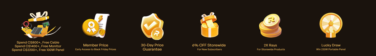During the event period, all purchases made on Renogy Canada’s official website are eligible to earn 2X Rays. Rays will be credited to the customer’s account after the order is confirmed and cannot be transferred, exchanged for cash, or combined with other offers.