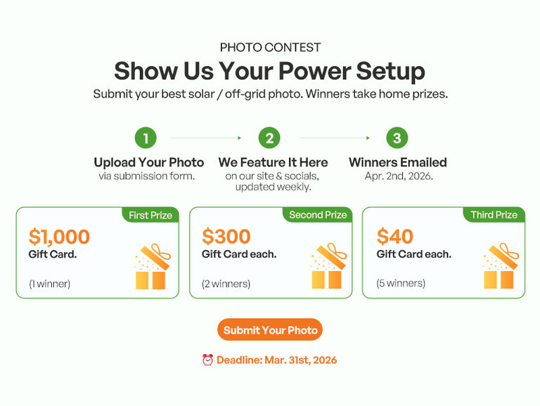Content License: By submitting a photo, you grant Renogy a non-exclusive, royalty-free license to use, display, and share your submission on Renogy's website, social media channels, and marketing materials. You confirm that you own all rights to the submitted content and that it does not infringe on any third-party rights.