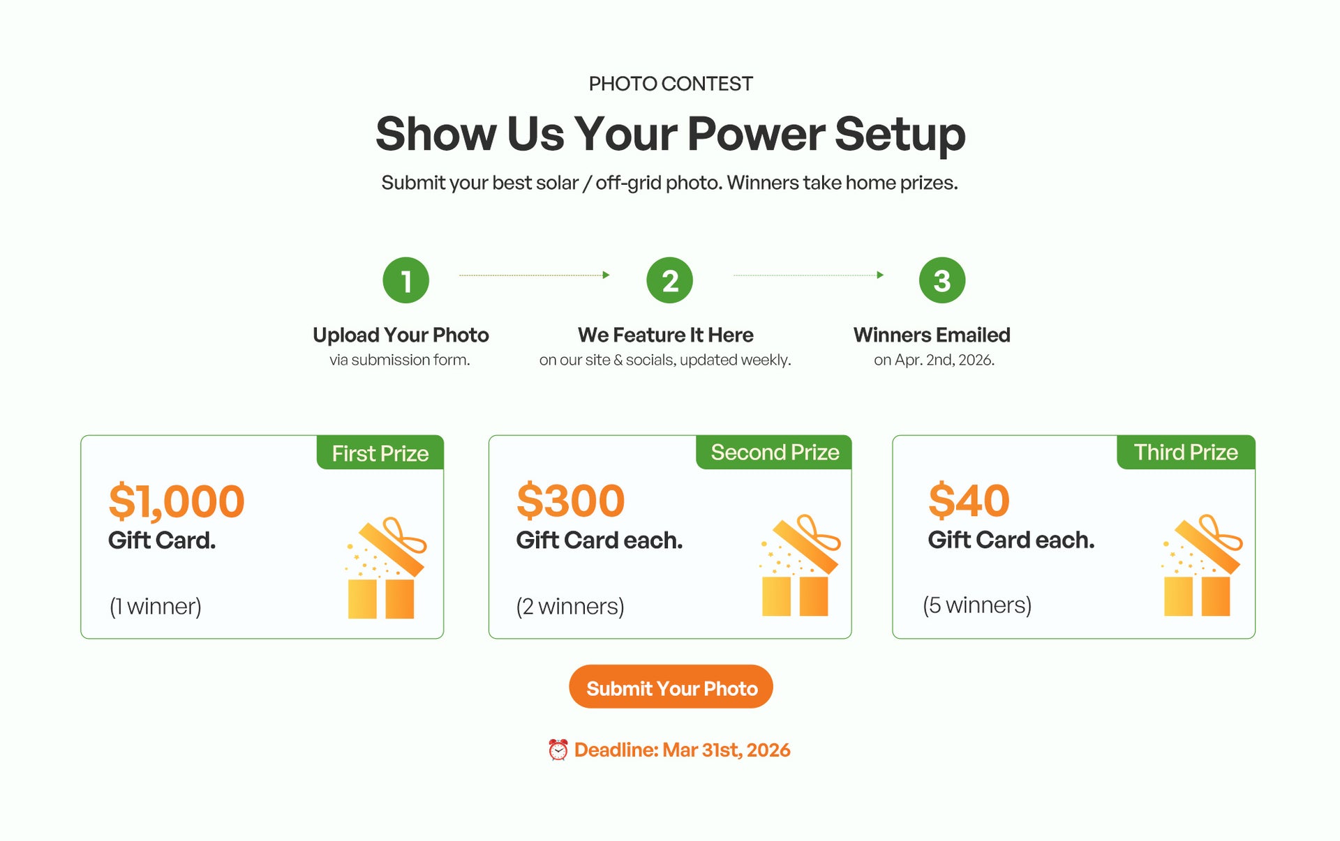 3. Third Prize (x5): $39.99 in curated Renogy merchandise each