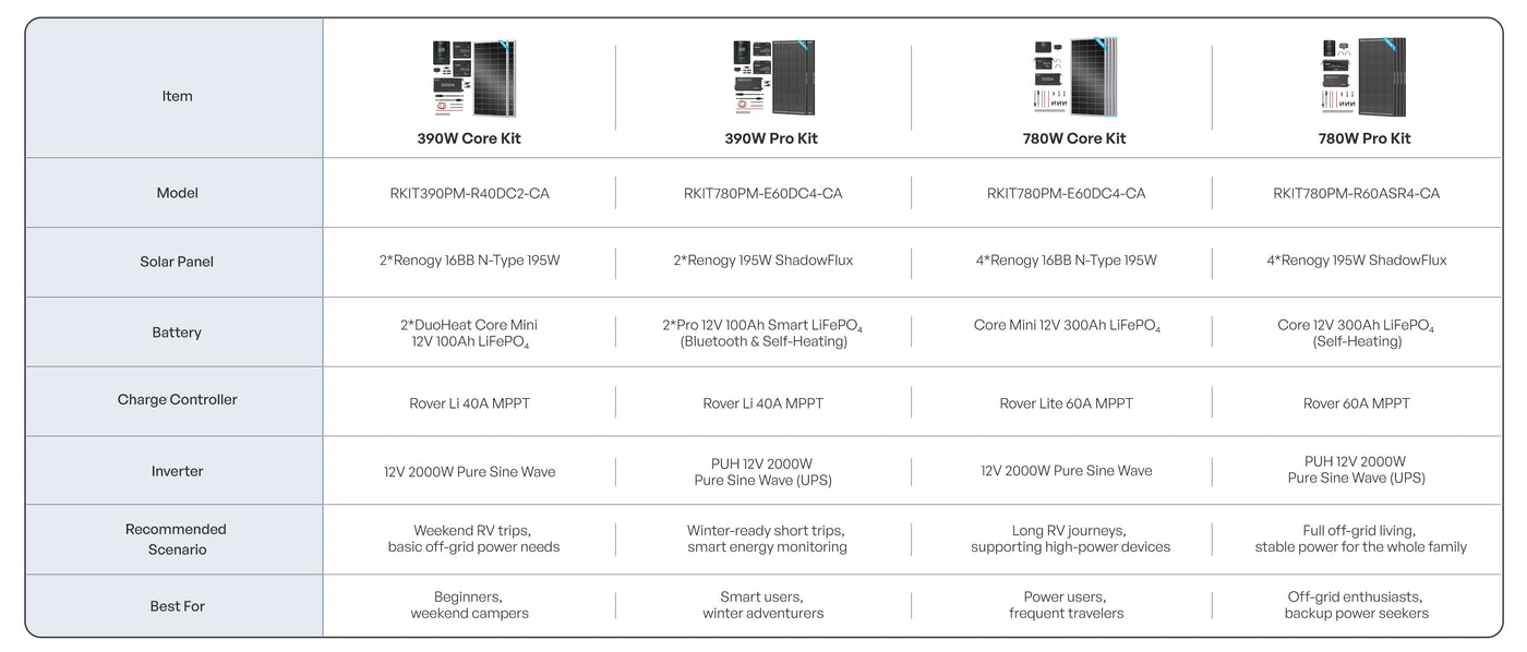 Yes. All kits use Renogy lithium batteries with built-in low-temperature protection or self-heating function (in Pro models), ensuring safe and efficient operation in sub-zero temperatures.