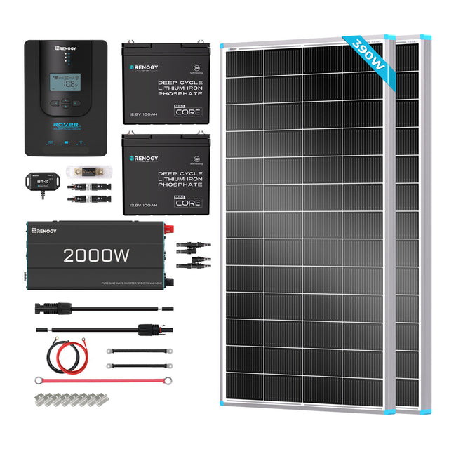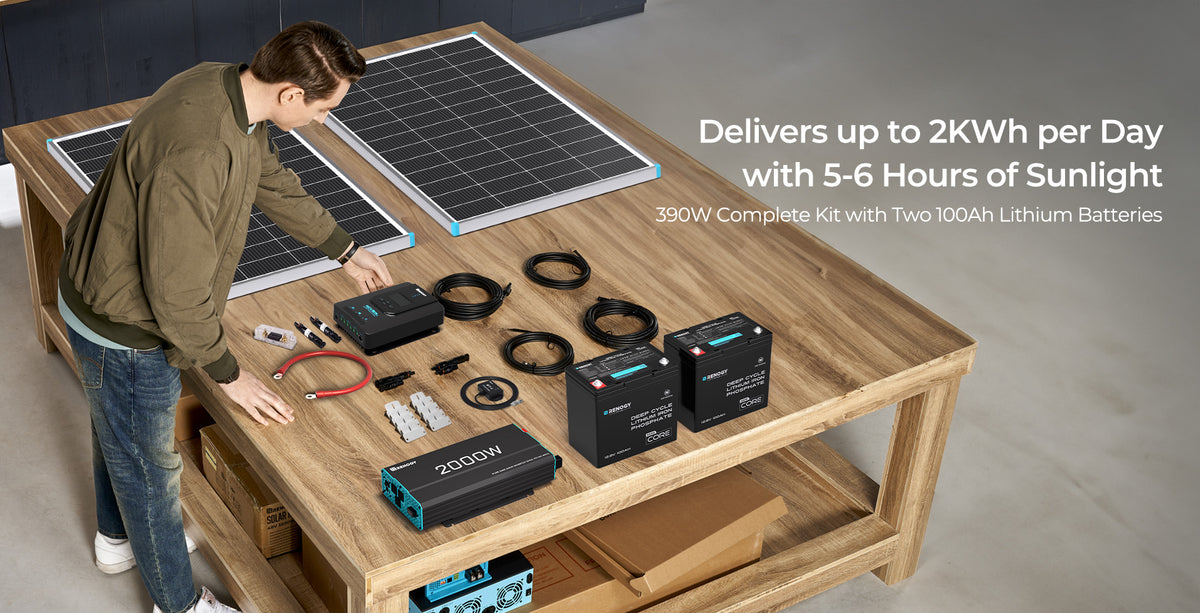 390W 12V N-type Complete Solar Kit w/ Two 100Ah Self-heating LiFePO4 Batteries